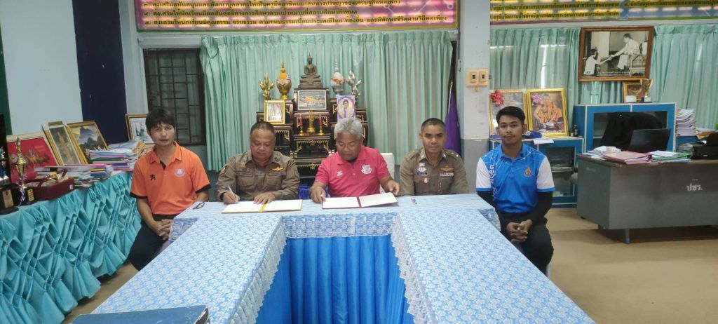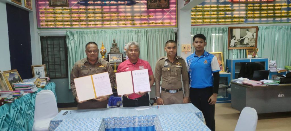 วันที่ 8 มี.ค.2567เวลา09.00-10.30น. ภายใต้การอำนวยการ ของ พ.ต.อ.ศุภวัชร อังคสยาวัฒน์ ผกก.สภ.สูงเนิน ,พ.ต.ท.พิทักษ์ วงศ์อาจ รอง ผกก.ป.ฯ,พ.ต.ท.ญาณวุฒิ ชินทุมพงษ์ สวป.ฯ มอบหมายให้ พ.ต.ต.ภูมิรัฐ พิสุทธิ์คุณวุธน์ สวป.(ชส.)สภ.สูงเนิน ร.ต.ท.สมบัติ อัครเสริญ ครูตำรวจแดร์ฯ พร้อมชุด ชมส.ฯ ร่วมพิธีลงนามบันทึกข้อตกลงลงนามร่วมมือ(MOU) สถานศึกษาสีขาวปลอดยาเสพติดและอบายมุข ณ โรงเรียนอนุบาลประชารัฐสามัคคึ ต.สูงเนิน อ.สูงเนินจ.นครราชสีมา