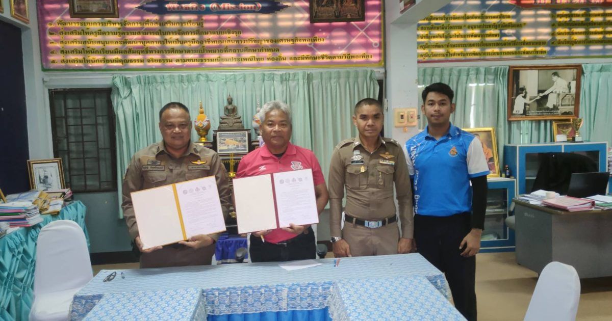 วันที่ 8 มี.ค.2567เวลา09.00-10.30น. ภายใต้การอำนวยการ ของ พ.ต.อ.ศุภวัชร อังคสยาวัฒน์ ผกก.สภ.สูงเนิน ,พ.ต.ท.พิทักษ์ วงศ์อาจ รอง ผกก.ป.ฯ,พ.ต.ท.ญาณวุฒิ ชินทุมพงษ์ สวป.ฯ มอบหมายให้ พ.ต.ต.ภูมิรัฐ พิสุทธิ์คุณวุธน์ สวป.(ชส.)สภ.สูงเนิน ร.ต.ท.สมบัติ อัครเสริญ ครูตำรวจแดร์ฯ พร้อมชุด ชมส.ฯ ร่วมพิธีลงนามบันทึกข้อตกลงลงนามร่วมมือ(MOU) สถานศึกษาสีขาวปลอดยาเสพติดและอบายมุข ณ โรงเรียนอนุบาลประชารัฐสามัคคึ ต.สูงเนิน อ.สูงเนินจ.นครราชสีมา