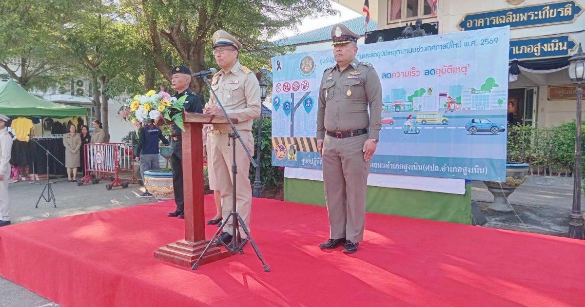 สถานีตำรวจภูธรสูงเนิน ร่วมพิธีเปิดกิจกรรมปล่อยขบวนรณรงค์การป้องกันและลดอุบัติเหตุทางถนนช่วงเทศกาลปีใหม่ พ.ศ. ๒๕๖๙