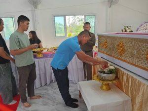 พร้อมข้าราชการตำรวจ สภ.สูงเนิน ร่วมรดน้ำศพและเป็นเจ้าภาพสวดพระอภิธรรมศพ คุณพ่อสวิท มีสูงเนิน อายุ 82 ปี บิดาของ ร.ต.อ.นรินทร์ มีสูงเนิน รอง สว.(ป.)ฯ ผกก.สภ.สูงเนิน ได้เป็นประธานรดน้ำศพ และประธานสวดพระอภิธรรม พร้อมมอบเงินสวัสดิการของ สภ.ช่วยเหลือในกรณีบิดาของข้าราชการตำรวจของ สภ.เสียชีวิต