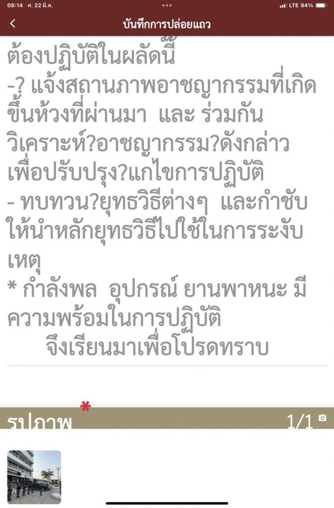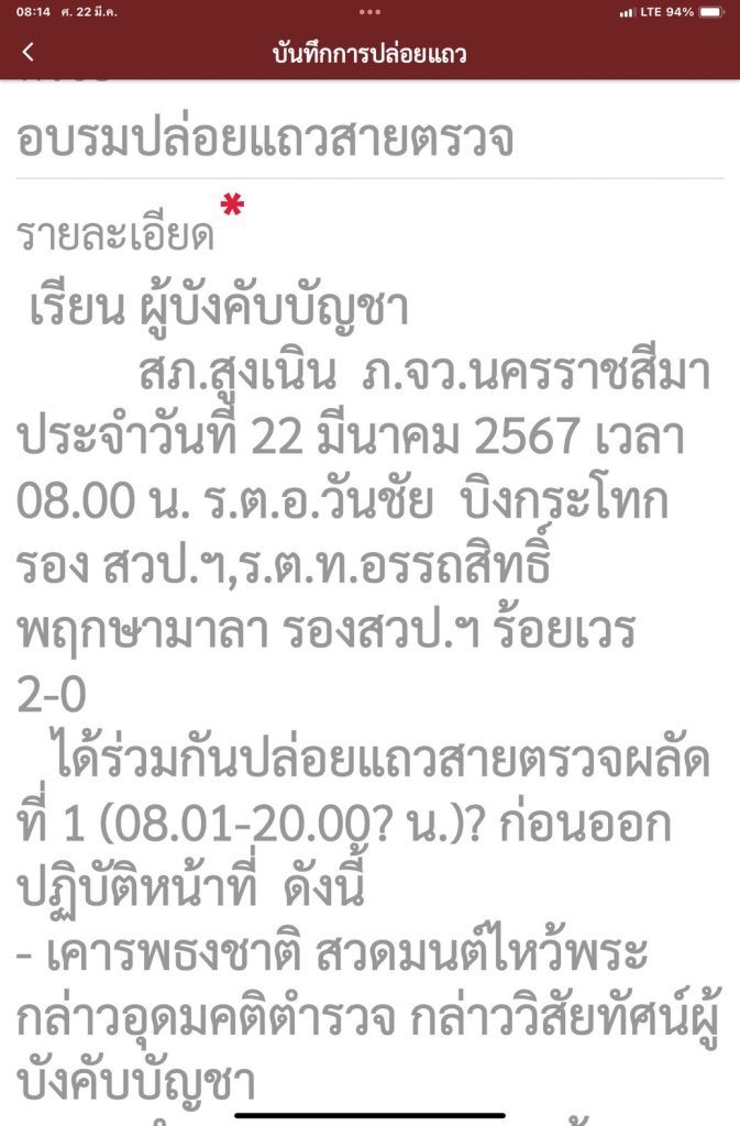 -ตรวจจำนวน สภาพความพร้อมของกำลังพล อุปกรณ์ประจำกาย และอุปกรณ์ประจำรถ พร้อมลงข้อมูลในระบบ POLICE 4.0