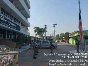 ได้เรียกแถวสายตรวจ เพื่อเคารพธงชาติพร้อมอบรมปล่อยแถวสายตรวจและชี้แจงข้อราชการ ข้อสั่งการ