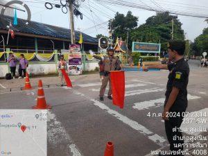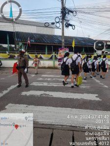 ร.ต.ต.วิเชียร แย้มสูงเนิน รอง สว.(ป)/ จราจรเวฯพร้อมด้วยคณะครูเวรฯ อาสาสมัครจราจรและนักเรียน ร.ด. โรงเรียนสูงเนิน ร่วมกัน ว.4 อำนวยความสะดวกการจราจร ที่ถนนหน้าโรงเรียนสูงเนินขณะปฎิบัติหน้าที่เหตุการณ์ปกติ