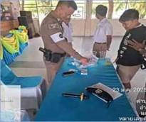 เมื่อวันที่ 23 ม.ค.2568 เวลา 09.30 – 11.30 น. ร.ต.อ.ประสิทธิ์ สมัยกลาง รอง สว.สส.สภ.สูงเนิน ปฏิบัตหน้าที่จราจร พร้อม ร.ต.ต.วิเชียร แย้มสูงเนิน รอง สว(ป.)ฯ ปฏิบัติหน้าที่จราจร ร่วมทำ MOU กับสถานศึกษา ตามโครงการโรงเรียนสีขาวพร้อมอบรมให้ความรู้ด้านกฎหมายจราจร โรงเรียนโค้งยางวิทยาคม ต.โค้งยาง อ.สูงเนิน จว.นครราชสีมา