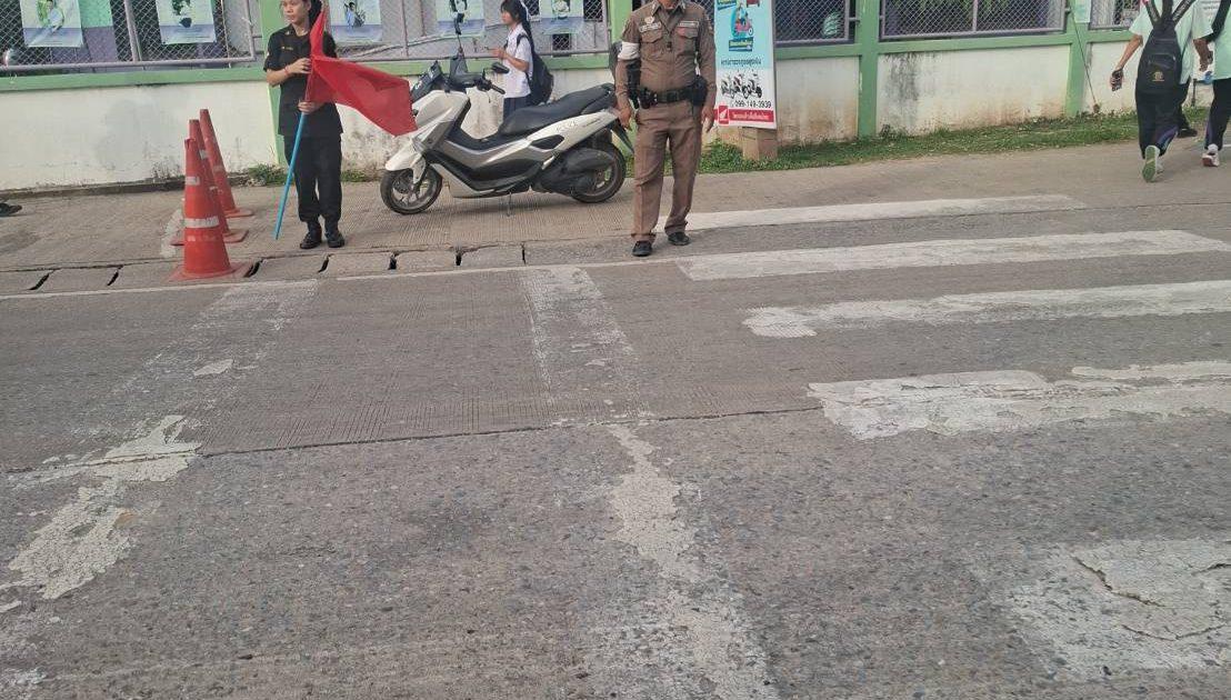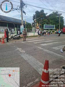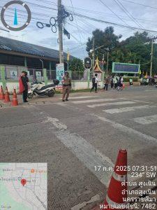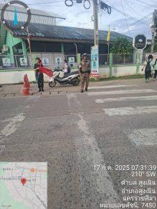 วันนี้( 17 ก.ค.2568) เวลา 07.20-08.00 น.ร.ต.ต.วิเชียร แย้มสูงเนิน รอง สว.(ป) จราจรเวรฯ พร้อมด้วยคุณครูเวรฯ,อส.จราจรและนักเรียน รด.ร่วมกันว.4 อำนวยความสะดวกการจราจร ที่ถนนหน้าโรงเรียนสูงเนิน ขณะปฏิบัติหน้าที่เหตุการณ์ปกติ