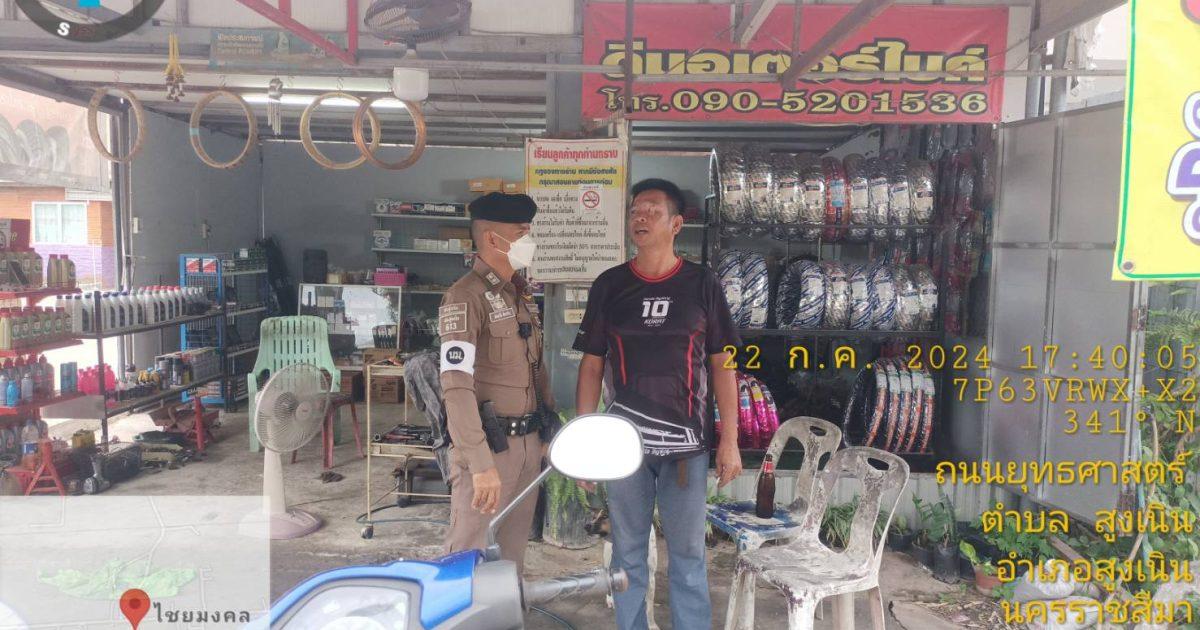 วันนี้ 22 ก.ค. 67 เวลา 17.30 น. ร.ต.ท.สมบัติ อัคเสริญ รอง สว.(ป) สภ.สูงเนิน ปฏิบัติหน้าที่ร้อยเวรจราจร (สน.60) พร้อมชุดจราจร ตรวจ/ ร้านซ่อมรถ จยย./ ประชาสัมพันธ์ ดังนี้