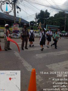 วันนี้ 15 ส.ค. 67 เวลาประมาณ 15.30น. ร.ต.ท.สมบัติ อัคเสริญ รอง สว.(ป) สภ.สูงเนิน พร้อมชุดจราจร อำนวยความสะดวกด้านการจราจรหน้าโรงเรียนในเขตเทศบาลสูงเนิน เหตุการณ์ทั่วไปปกติ