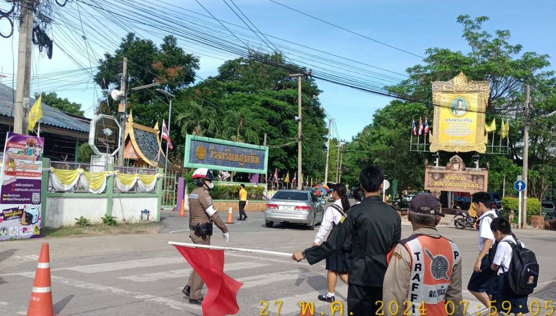 วันนี้ 27 พฤษภาคม 2567 เวลา 07.35 น. ร.ต.ท.สมบัติ อัคเสริญ รอง สว.(ป) สภ.สูงเนิน พร้อมชุดจราจร อำนวยความ