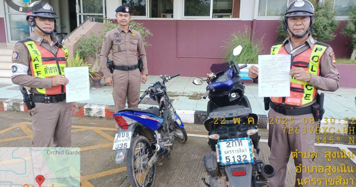 วันนี้ 22 พฤษภาคม 2568 เวลาประมาณ 07:40 น ร.ต.ท.สมบัติ อัคเสริญ รอง สว.(ป) สภ.สูงเนิน (สน.60) พร้อมชุดจราจร ตรวจยึดรถ จยย. เปลี่ยนแปลงสภาพรถ (ท่อเสียงดัง) เพื่อตรวจสอบ จำนวน 2 ราย / นำเข้า สภ.สูงเนิน เพื่อดำเนินการในส่วนที่เกี่ยวข้องต่อไป /โดยมี พ.ต.ท.พิทักษ์ วงศ์อาจ รอง ผกก.ป. สภ.สูงเนิน ให้คำแนะนำแนวทางการปฏิบัติเพื่อความปลอดภัยของเจ้าหน้าที่อีกด้วย