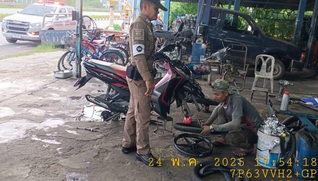 วันนี้ 24 พฤษภาคม 2568 เวลาประมาณ 17.55 น. ร.ต.ท.สมบัติ อัคเสริญ รอง สว.(ป) สภ.สูงเนิน ปฏิบัติหน้าที่ร้อยเวรจราจร (สน.60) พร้อมชุดจราจร ตรวจร้านซ่อมรถ จยย.ช่างทรูย์มอเตอร์ ถนนมิตรภาพ