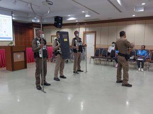 ร.ต.อ.ชูศักดิ์ รัตนพันธ์ รอง สวป.สภ.สูงเนิน พร้อมด้วย สายตรวจรถยนต์,สายตรวจ จักรยานยนต์ เป็นวิทยากรอบรมเชิงปฏิบัติการ ณ โรงพยาบาลสูงเนิน