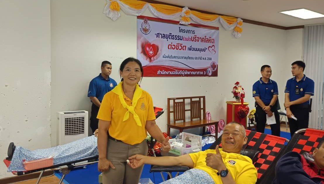 วันนี้ 9 เม.ย.2568 เวลา 10.00 น. โดย พ.ต.อ.อิษฏ์ บุญญะฤทธิ์ ผกก.สภ.สูงเนิน มอบหมายให้ ร.ต.อ.หญิงฉวีวรรณ แจ้งสูงเนิน พร้อมข้าราชการตำรวจจิตอาสา สภ.สูงเนิน ร่วมบริจาคโลหิต ต่อชีวิตเพื่อนมนุษย์เนื่องในวันสถาปนาศาลยุติธรรมประจำปี พ.ศ.2568” ณ ห้องสันทนาการ ชั้น G ศาลจังหวัดนครราชสีมา