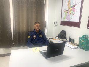 พ.ต.ท.สรายุทธ ทรายตะคุ สว.สส.สภ.สูงเนิน เฝ้าฟังการประชุม ศปก. ตร. ผ่านระบบ ZOOM ณ ห้องประชุม สภ.สูงเนิน