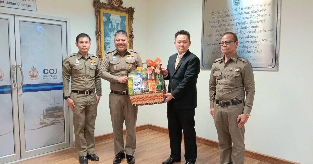 พ.ต.อ.อิษฏ์ บุญญะฤทธิ์ ผกก.สภ.สูงเนิน พร้อม พ.ต.ท.สมชาย บุญโญปกรณ์ รอง ผกก.(สอบสวน)ฯ และ พ.ต.ท.สุทธิรักษ์ โพธิ์แดง รอง ผกก.(สอบสวน)ฯ เดินทางเข้าคารวะนายรัฐวิชญ์ อนันตวิทยานนท์ ผู้พิพากษาหัวหน้าคณะชั้นต้นในศาลอาญามีนบุรีช่วยทำงานชั่วคราวในตำแหน่งผู้พิพากษาหัวหน้าศาลจังหวัดสีคิ้ว และ พ.ต.ท.ประสงค์ สุขเกษม อัยการจังหวัดสีคิ้ว เนื่องในโอกาสที่ท่านทั้งสองมาดำรงตำแหน่งใหม่