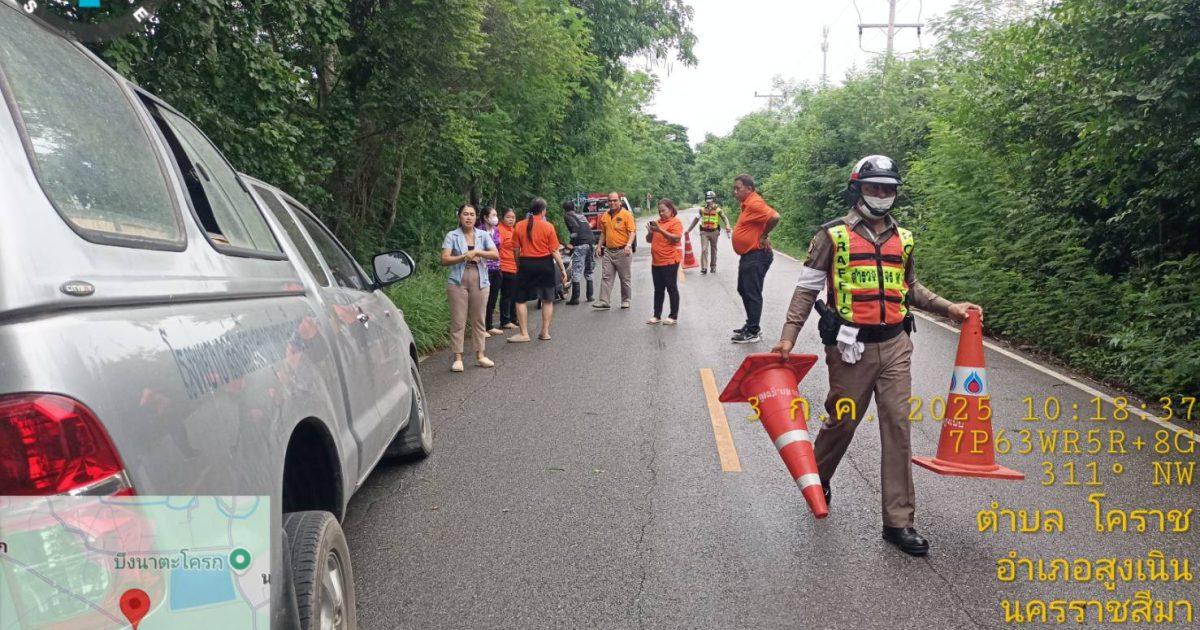 สน.60 พร้อมชุดจราจรอำนวยความสะดวกการจราจรเหตุ ว.40 ถนนเส้นหน้า อบต.โคราช เป็นรถเจ้าหน้าที่จาก รพ.สต.เมืองเก่า ต.โคราช ตรวจสอบเบื้องต้นมีผู้บาดเจ็บแขนขาเล็กน้อย พลเมืองดีนำส่ง รพ.สูงเนิน