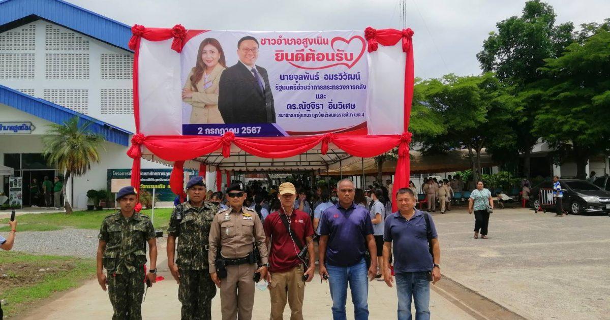 สภ.สูงเนิน วันนี้(2 ก.ค.67)เวลา 13.00 น. พ.ต.ท.ณัฐวุฒิ บุญสิงห์ รอง ผกก.สส.ฯ , พ.ต.ท.ญาณวุฒิ ชินทุมพงษ์ สวป.ฯ, พ.ต.ท.สรายุทธ ทรายตะคุ สว.สส.ฯ พร้อม ข้าราชการตำรวจ สภ.สูงเนิน ชุดสืบสวน รักษาความปลอดภัยและอำนวยความสะดวกการจราจร นายจุลพันธ์ อมรวิวัฒน์ รัฐมนตรีช่วยว่าการกระทรวงการคลัง และคณะ ตรวจเยี่ยมโครงการฟื้นฟูพัฒนาศักยภาพลูกค้าพักชำระหนี้ ภายใต้มาตรการพักชำระหนี้ให้กับลูกหนี้รายย่อยตามนโยบายรัฐ ณ หอประชุมที่ว่าการอำเภอสูงเนิน ต.สูงเนิน อ.สูงเนิน จ.นครราชสีมา