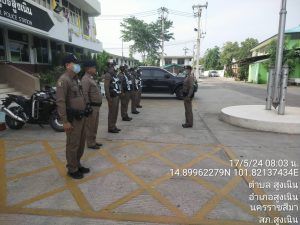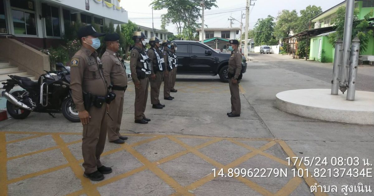สภ.สูงเนิน ภ.จว.นครราชสีมา ประจำวันที่ 17 พ.ค. 2567 เวลา 08.00 น. นำโดย พ.ต.ท.ญาณวุฒิ ชินทุมพงษ์ สวป.สภ.สูงเนิน