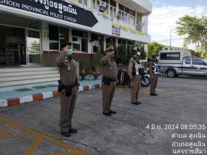 เรียกแถวสายตรวจรถจักรยานยนต์ ผลัดที่ 1 ว.4 วันนี้ ตั้งแต่เวลา 08.00 – 20.00 น. เข้าแถวเคารพธงชาติ สวดมนต์ไหว้พระ กล่าวอุดมคติตำรวจ