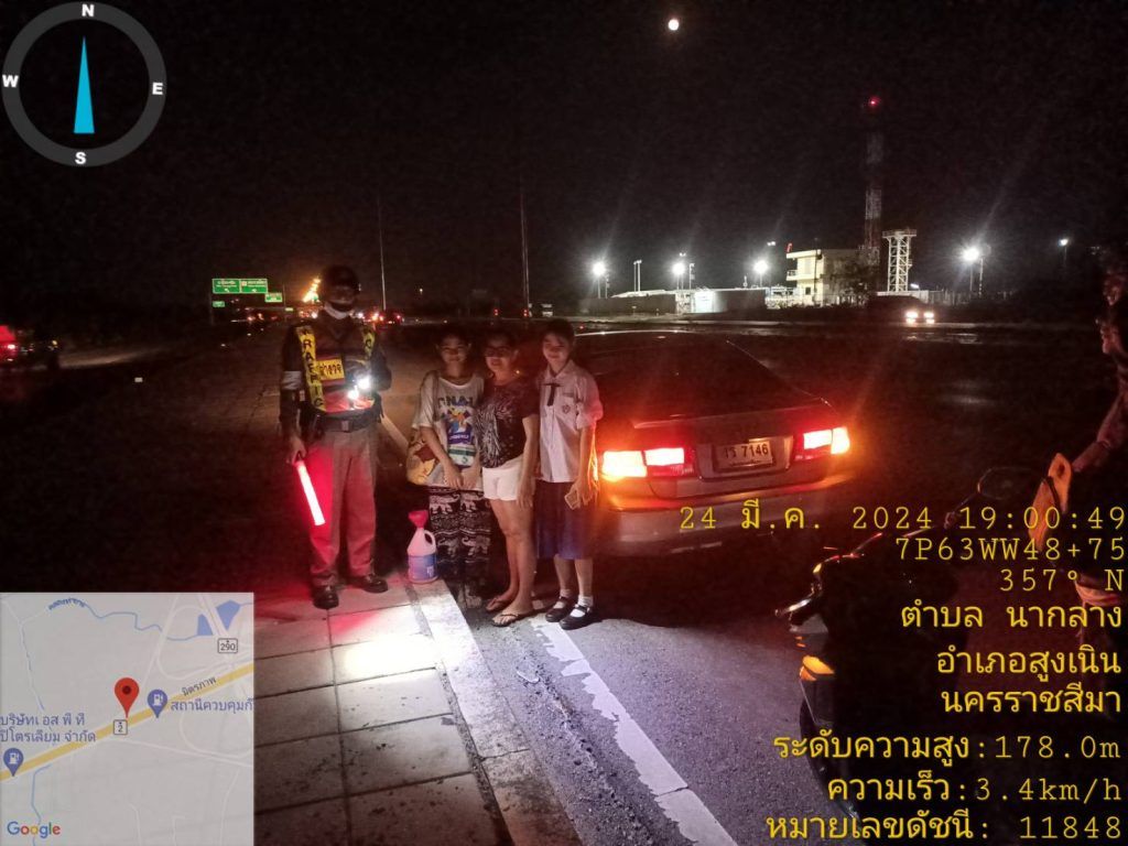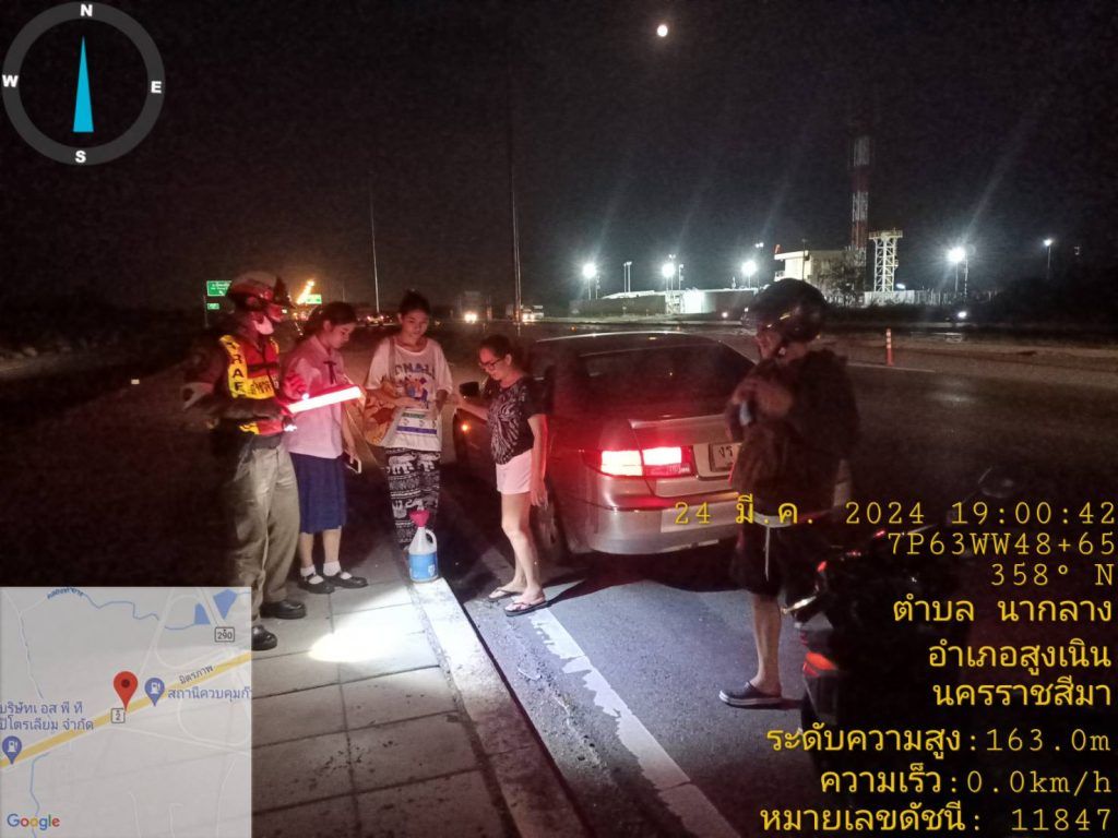 วันนี้ 24 มีนาคม 2567 เวลาประมาณ 19.00 น. ร.ต.ท.สมบัติ อัคเสริญ (สน.60) ,ด.ต.ทินกร ขอแจ้งกลาง ออกตรวจสภาพการจราจรถนนมิตรภาพ พบประชาชนที่จะเดินทางเข้านครราชสีมา รถหมดน้ำมันจึงให้การช่วยเหลือสามารถเดินทางต่อไปได้ ช่วงกม 127 วงแหวนห้วยตะคร้อ ช่องทางด่วน