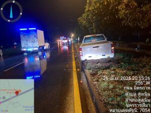 สน.60 พร้อมชุดจราจร วอ 4 ตรวจสอบเหตุรถเฉี่ยวชนกันบริเวณถนนมิตรภาพกิโลเมตรที่ 122 ก่อนถึงจุดกลับรถบุใหญ่