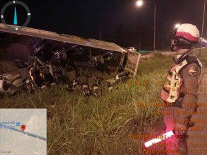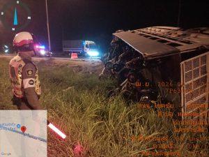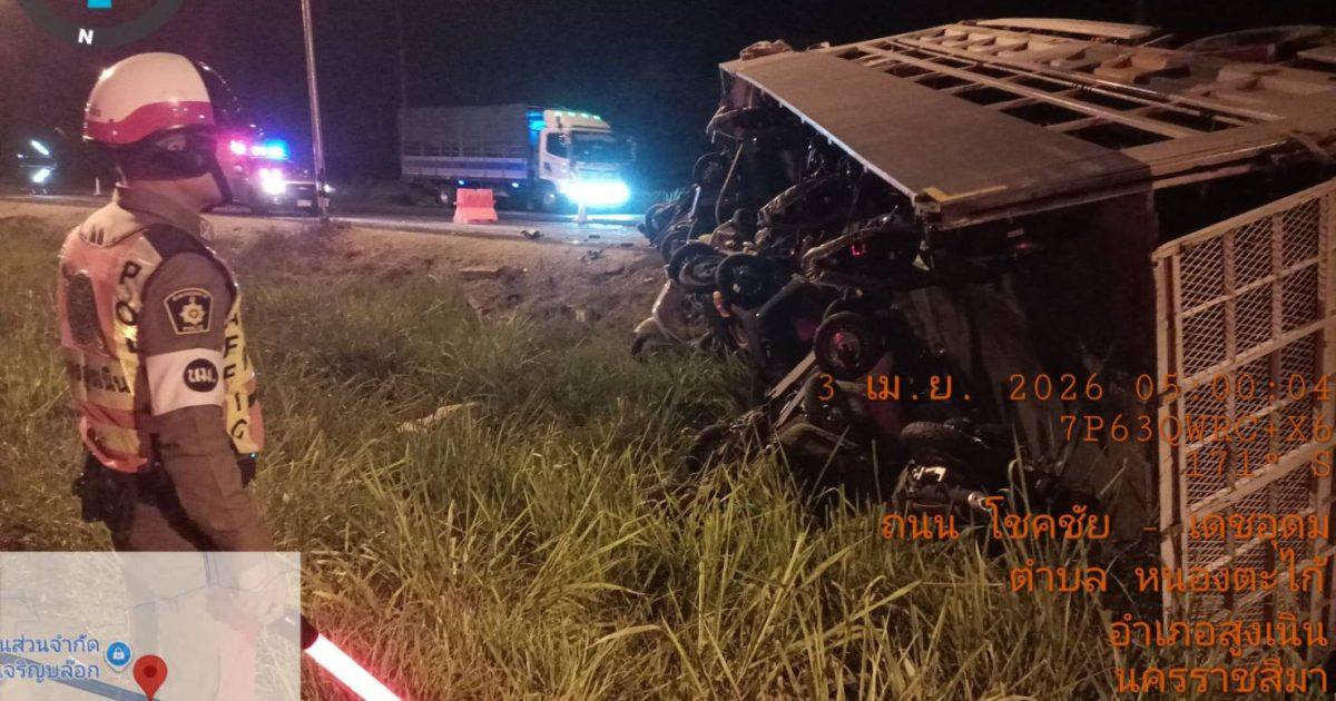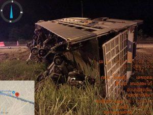 สน.60 พร้อมชุดจราจรอำนวยความสะดวกการจราจรและช่วยเหลือผู้บาดเจ็บ เหตุ ว.40 ถนนสาย 24 ตรวจสอบเบื้องต้นเป็นรถ 6 ล้อบรรทุกรถจักรยานยนต์พลิกคว่ำด้วยตนเองบริเวณร่องกลางถนน / มีผู้บาดเจ็บบริเวณหัวไหล่ซึ่งเป็นคนขับกู้ชีพหนองตะไก้นำส่งโรงพยาบาลสูงเนิน การจราจรไม่ติดขัดสามารถเดินรถได้อย่างต่อเนื่อง
