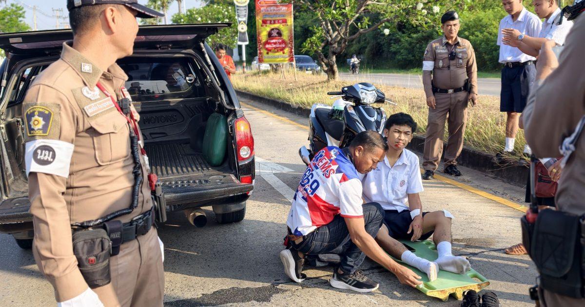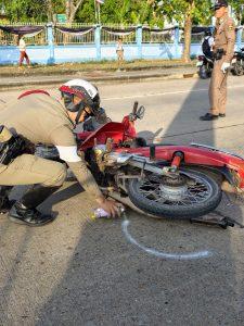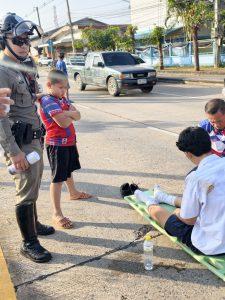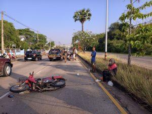 สน.60 ชุดจราจร ว.4 เหตุ ว.40 รถจักรยานยนต์เฉี่ยวชนกัน บริเวณหน้าโรงเรียนระดมฯ มีผู้บาดเจ็บ 2 ราย เจ้าที่กู้ภัยนำส่งโรงพยาบาลสูงเนิน