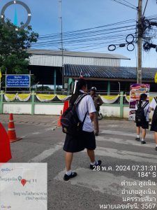 ร.ต.ต.วิเชียร แย้มสูงเนิน พร้อมด้วย คณะครู อาสาสมัครจราจรและนักเรียน ร.ด. โรงเรียนสูงเนิน ร่วมกัน ว.4 อำนวยความสะดวกการจราจร ที่ถนนหน้าโรงเรียนสูงเนินขณะปฎิบัติหน้าที่เหตุการณ์ปกติ