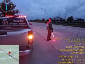 สภ.สูงเนิน ภ.จว.นม. วันนี้ 17 พฤษภาคม 2568 เวลาประมาณ 18.46 น. ร.ต.ท.สมบัติ อัคเสริญ รอง สว.(ป) สภ.สูงเนิน ปฏิบัติหน้าที่ร้อยเวรจราจร (สน.60) พร้อมชุดจราจร ตรวจถนนบายพาสนากลาง 290 เปิดสัญญาณไฟวับว้าบป้องกันเหตุวัยรุ่นจับกลุ่มแข่งรถในทางสาธารณะ ณ.เวลานี้ไม่พบกลุ่มเป้าหมาย