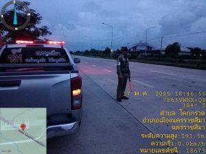 สภ.สูงเนิน ภ.จว.นม. วันนี้ 17 พฤษภาคม 2568 เวลาประมาณ 18.46 น. ร.ต.ท.สมบัติ อัคเสริญ รอง สว.(ป) สภ.สูงเนิน ปฏิบัติหน้าที่ร้อยเวรจราจร (สน.60) พร้อมชุดจราจร ตรวจถนนบายพาสนากลาง 290 เปิดสัญญาณไฟวับว้าบป้องกันเหตุวัยรุ่นจับกลุ่มแข่งรถในทางสาธารณะ ณ.เวลานี้ไม่พบกลุ่มเป้าหมาย