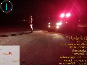 สภ.สูงเนิน ภ.จว.นม. วันนี้ 9 มิ.ย.67 เวลาประมาณ 22.29 น. ร.ต.ท.สมบัติ อัคเสริญ รอง สว.(ป) สภ.สูงเนิน ปฏิบัติหน้าที่ร้อยเวรจราจร พร้อมชุดจราจร ตรวจถนนสาย บายพาสนากลาง 290 จากเขตติดต่อโพธิ์กลาง – ขามทะเลสอ เปิดสัญญาณไฟวับว้าบป้องกันเหตุวัยรุ่นจับกลุ่มแข่งรถในทางสาธารณะ ณ.เวลานี้ไม่พบกลุ่มเป้าหมาย เหตุการณ์ทั่วไปปกติ