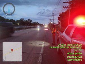 วันนี้ 27 มิ.ย.67 เวลาประมาณ 18.40 น. ร.ต.ท.สมบัติ อัคเสริญ รอง สว.(ป) สภ.สูงเนิน ปฏิบัติหน้าที่ร้อยเวรจราจร พร้อมชุดจราจร ตรวจถนนสาย บายพาสนากลาง 290 จากเขตติดต่อโพธิ์กลาง – ขามทะเลสอ เปิดสัญญาณไฟวับว้าบป้องกันเหตุวัยรุ่นจับกลุ่มแข่งรถในทางสาธารณะ
