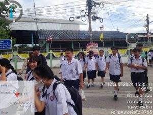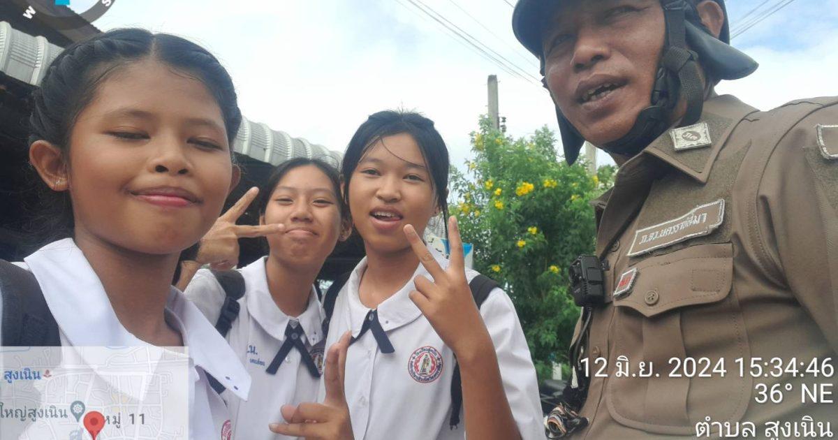 ร.ต.ต.วิเชียร แย้มสูงเนิน รอง สว.(ป)/ สน 6-0 พร้อมคณะครูเวรฯ อาสาสมัครจราจรและนักเรียน ร.ด. โรงเรียนสูงเนิน ร่วมกัน ว.4 อำนวยความสะดวกการจราจร ที่ถนนหน้าโรงเรียนสูงเนินขณะปฎิบัติหน้าที่เหตุการณ์ปกติ