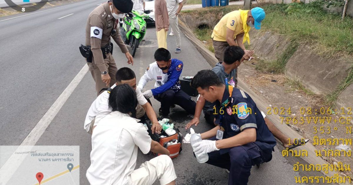 สภ.สูงเนิน ภ.จว.นม.วันที่ 9 มี.ค. 2567 เวลาประมาณ 08.00 น. ร.ต.ท.สมบัติ อัคเสริญ รอง สว.(ป.)สภ.สูงเนิน สน.60 ชุดจราจร อำนวยความสะดวกการจราจร เหตุ ว.40 ถนนมิตรภาพ หน้าเขตอุตสาหกรรมนวนคร ช่องทางคู่ขนานขาเข้า กทม.เบื้องต้นเป็นรถ จยย. กับ จยย. มีผู้บาดเจ็บ 2 ราย สว่างแสงธรรมนำส่ง รพ.สูงเนิน และได้ประสานในส่วนที่เกี่ยวข้องในการปฏิบัติหน้าที่ครั้งนี้ได้มี ด.ต.ทินกร ขอแจ้งกลาง ผบ.หมู่ (ป) สภ.สูงเนิน ว.4 เวรจราจร ( แต่งกายชุดจิตอาสา ) ทำหน้าทึ่ปฐมพยาบาลเบื้องต้น การจราจร ไม่ติดขัดสามารถเดินรถได้ได้อย่างต่อเนื่อง