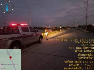 วันนี้ 23 เมษายน 2568 เวลาประมาณ 18.47 น. ร.ต.ท.สมบัติ อัคเสริญ รอง สว.(ป) สภ.สูงเนิน ปฏิบัติหน้าที่ร้อยเวรจราจร (สน.60) พร้อมชุดจราจร ตรวจถนนบายพาสนากลาง 290