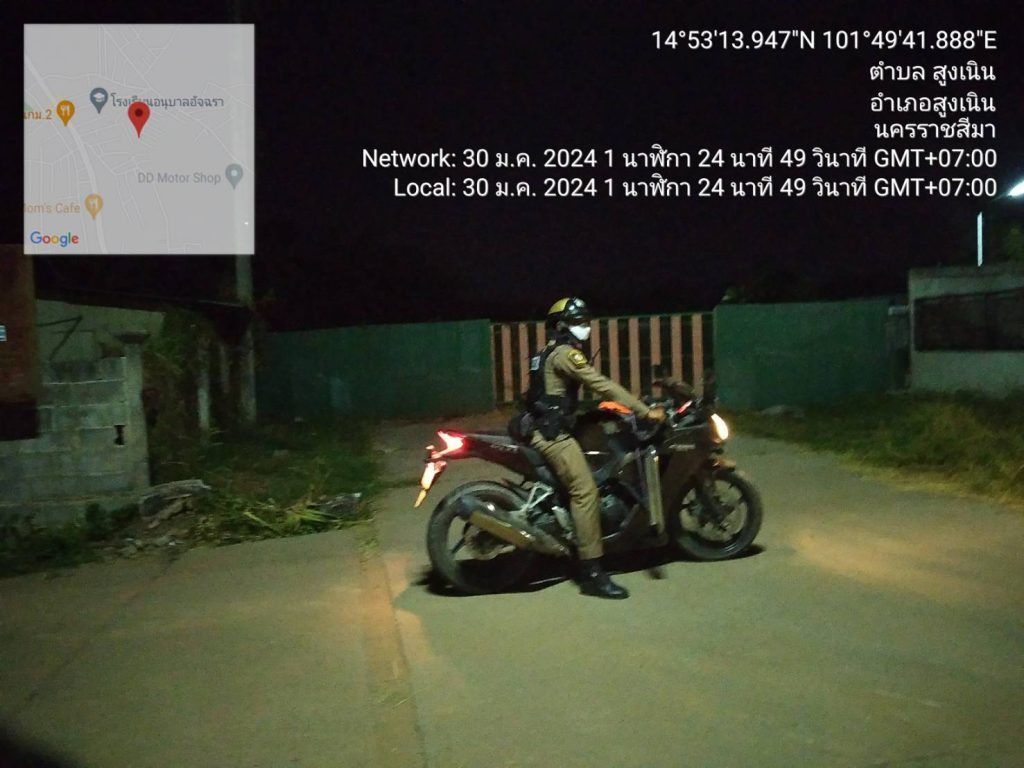 วันที่ 30 ม.ค.2567เวลา00.01-08.00 น.ด.ต.อนุสรณ์ เหงี่ยมสูงเนิน ผบ.หมู่(ป.)สภ.สูงเนินและส.ต.อ.วิระพันธ์ เกลี้ยงไธสง ผบ.หมู่(ป.)สภ.สูงเนิน สายตรวจรถจักรยานยนต์ รหัส สน.033 ออกตรวจร้านสะดวกซื้อ 7- eleven ข้างธนาคารกรุงเทพ , ปตท.ยุทธศาสตร์ , แยกบ้านกกกอก ปราสาทเมืองเเขก,โพธิ์ทองรีสอร์ท , หมู่บ้านเจ อาร์และร้านเอกวัฒนาพืชผลเหตุการณ์ทั่วไปปกติ
