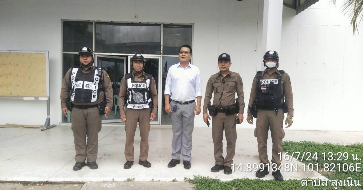 สูงเนิน 20 สายตรวจรถยนต์ สายตรวจรถจักรยานยนต์ ว.4 ป้องกันเหตุ บริเวณหอประชุมอำเภอสูงเนิน