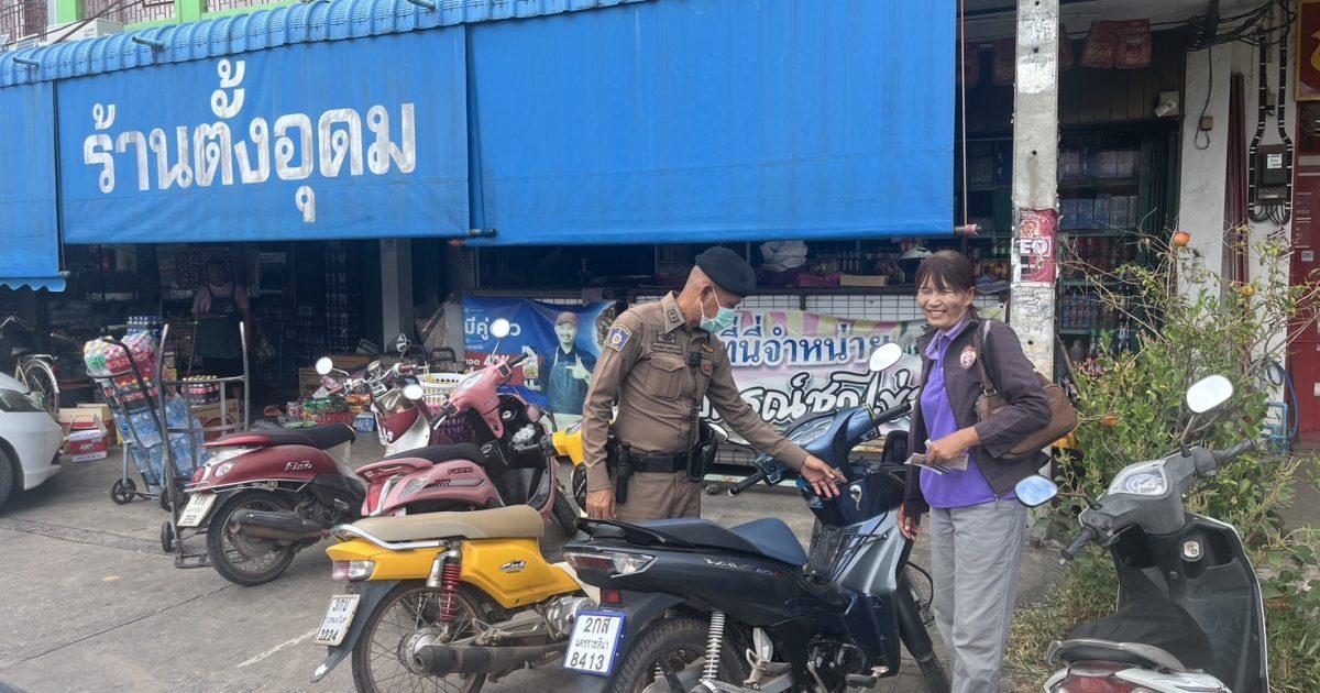 สูงเนิน 20 สายตรวจรถยนต์ แนะนำประชาชนที่มาใช้บริการบริเวณตลาดสูงเนิน ลืมกุญแจคารถจักรยานยนต์์ไว้ เพื่อป้องกันเหตุรถหาย