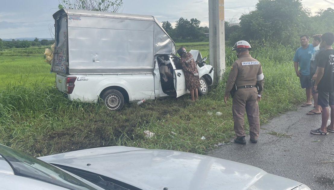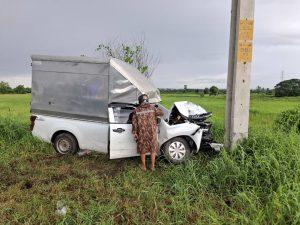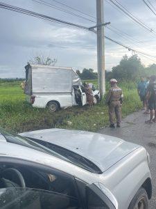 สูงเนิน 60 สายตรวจจราจร ว 4 เหตุว 40 ด้วยตนเองรถตู้ อีซูซุ สีขาวเสียหลักตกลงข้างทางชนเสาไฟฟ้า มีผู้บาดเจ็บเป็นชาย