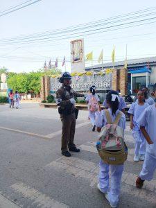 สูงเนิน 60 สายตรวจจราจร ว4 อำนวยความสะดวกการจราจรหน้าโรงเรียนในเขตเทศบาลตำบลสูงเนิน