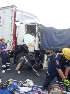 มีผู้ได้รับบาดเจ็บ 1 ราย เป็นชาย ติดในรถกู้ภัยดำลังดำเนินการช่วยเหลือ