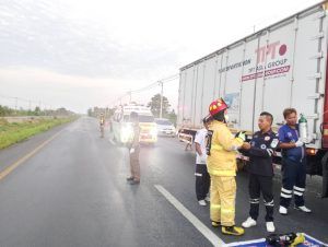 มีผู้ได้รับบาดเจ็บ 1 ราย เป็นชาย ติดในรถกู้ภัยดำลังดำเนินการช่วยเหลือ