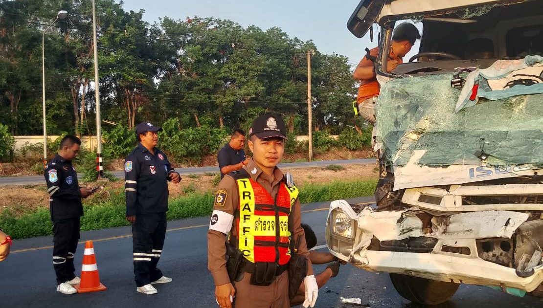 สูงเนิน 60 สายตรวจจราจร ว4 เหตุ ว40 รถบรรทุกทุก 6 ล้อตู้ทึบชนท้าย ชนท้ายรถบรรทุก 10 ล้อ