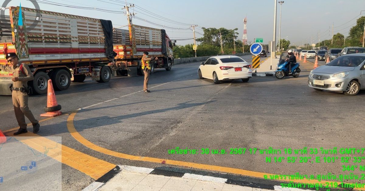 สูงเนิน2-0 อำนวยความสะดวกการจราจร จุดกลับรถบุใหญ่ ถ.มิตรภาพ การจราจร คล่องตัว ปกติ