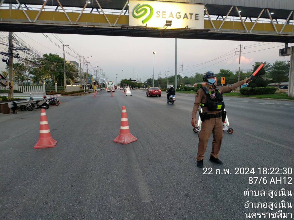 วันที่ 22 ก.พ.2567เวลา17.00-19.00 น.พ.ต.ต.ภูมรัฐ พิสุทธิ์คุณวุธน์ สวป.(ชส.)สภ.สูงเนิน ร้อยเวร 2-0 สายตรวจรถยนต์ อำนวยความสะดวกจราจรจุดกลับรถบุใหญ่ , สายตรวจรถจักรยานยนต์ เขต 3 อำนวยความสะดวกการจราจรหน้าบริษัทชีเกท จากนั้นได้ ออกตรวจป้องกันเหตุขับขี่แข่งขันรถในทาง จุดกลับรถ กม.3 ถนน24 เหตุการณ์ปกติ