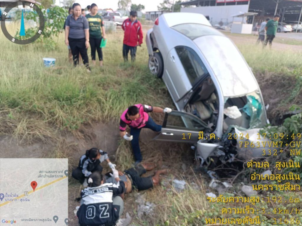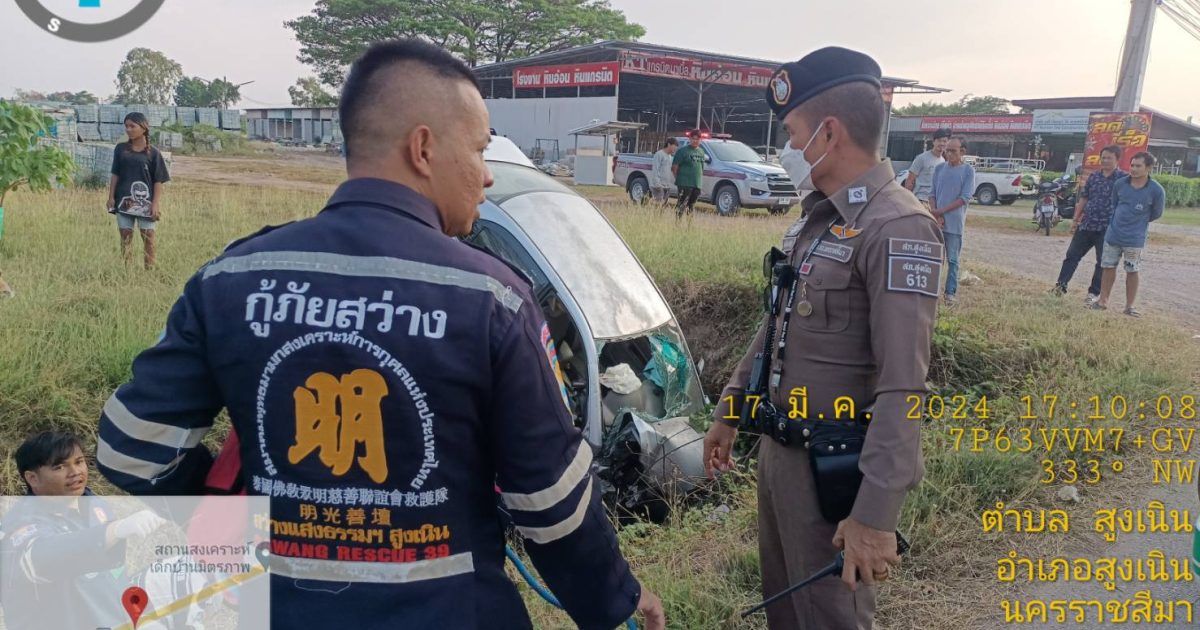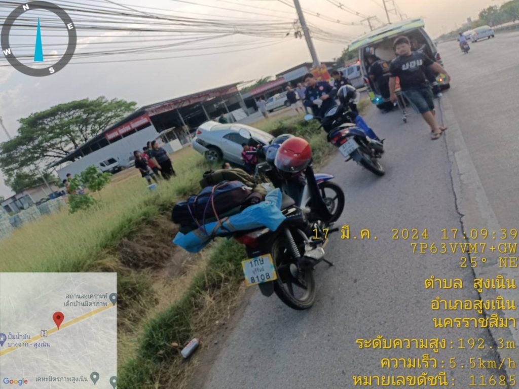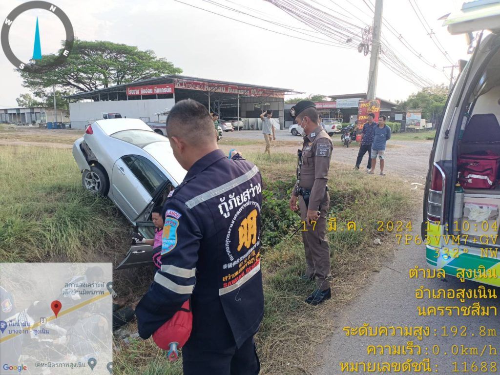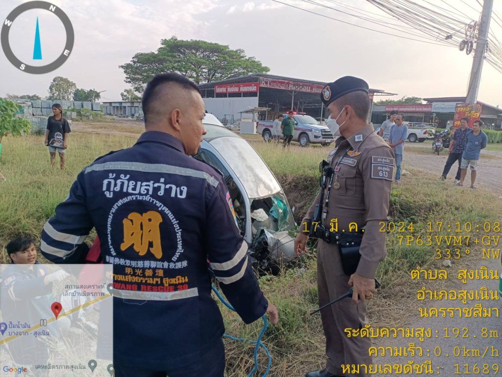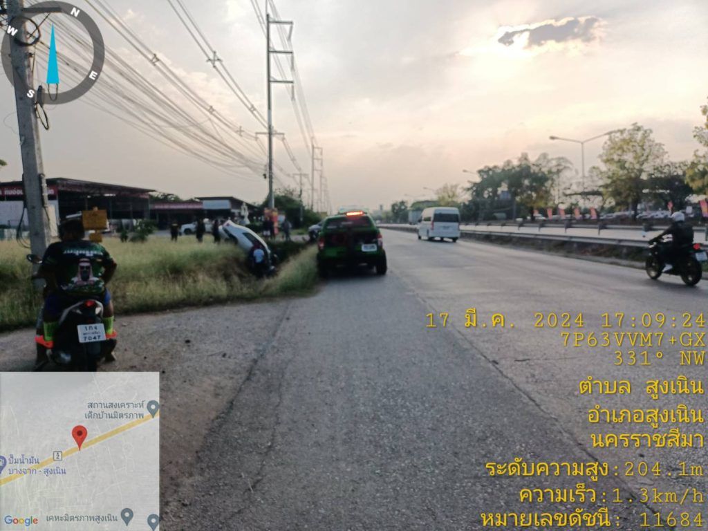 วันที่ 17 มี.ค. 2567 เวลาประมาณ 16.00 น.ร.ต.ท.สมบัติ อัคเสริญ รอง สว.(ป.)สภ.สูงเนิน สน.60 ชุดจราจร อำนวยความสะดวกการจราจร เหตุ ว.40 ถนนมิตรภาพ หน้าโรงเรียนบุใหญ่ ช่องทางคู่ขนาน ขาเข้ากรุงเทพมหานคร กม.120+500 เบื้องต้นเป็นรถ เก๋งเสียหลักพลิกคว่ำด้วยตัวเอง เบื้องต้นมีผู้บาดเจ็บเป็นชาย 1 รายได้ประสานในส่วนที่เกี่ยวข้องการจราจร ไม่ติดขัดสามารถเดินรถได้ได้อย่างต่อเนื่อง