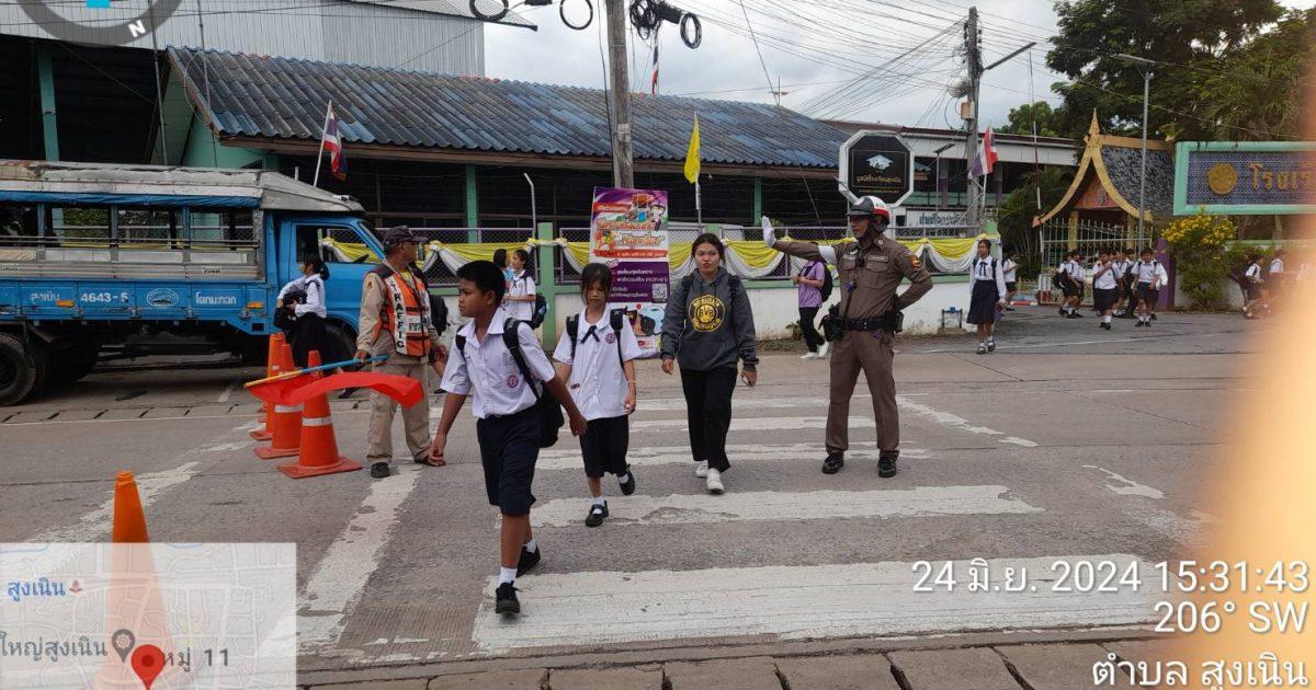 วันนี้( 24 มิ.ย.2567) เวลา 15.20-16.10น.ร.ต.ต.วิเชียร แย้มสูงเนิน รอง สว.(ป)/ สน 6-0 พร้อมคณะครูเวรฯ อาสาสมัครจราจรและนักเรียน ร.ด. โรงเรียนสูงเนิน ร่วมกัน ว.4 อำนวยความสะดวกการจราจร ที่ถนนหน้าโรงเรียนสูงเนิน ขณะปฎิบัติหน้าที่เหตุการณ์ปกติ