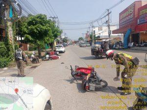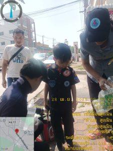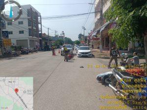 จุดสามแยกหน้าธนาคารกรุงเทพ ตรวจสอบเบื้องต้นบาดเจ็บเล็กน้อยถลอกตามร่างกาย