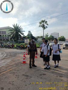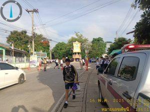วันนี้ 16 พฤษภาคม 2568 เวลา 07.00 น ร.ต.ท.สมบัติ อัคเสริญ รอง สว.(ป) สภ.สูงเนิน (สน.60) พร้อมชุดจราจร / สายตรวจ จยย. ร่วมกัน ว.4 อำนวยความสะดวกการจราจรหน้าโรงเรียนในเขตเทศบาลสูงเนิน / เปิดเทอมวันแรก / การจราจรไม่ติดขัด / เหตุการณ์ทั่วไปปกติ