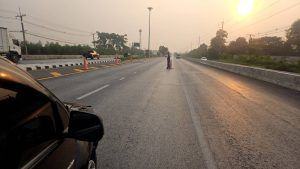 เหตุ 40 จุดกลับรถบุใหญ่ ตรงจุดกลับรถขาเข้า กทม. กีดขวางการจราจร 1 ช่องทางมีผู้ได้รับบาดเจ็บเล็กน้อย 2-3 ราย สาเหตุจากยางรถระเบิด
