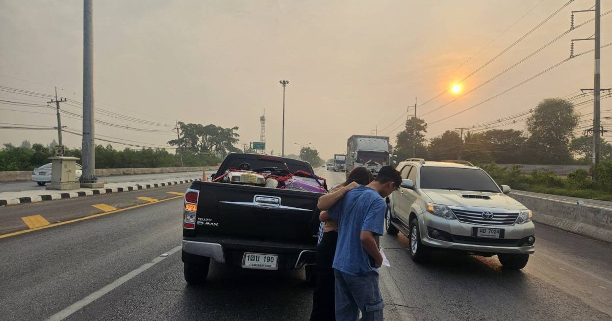 เหตุ 40 จุดกลับรถบุใหญ่ ตรงจุดกลับรถขาเข้า กทม. กีดขวางการจราจร 1 ช่องทางมีผู้ได้รับบาดเจ็บเล็กน้อย 2-3 ราย สาเหตุจากยางรถระเบิด